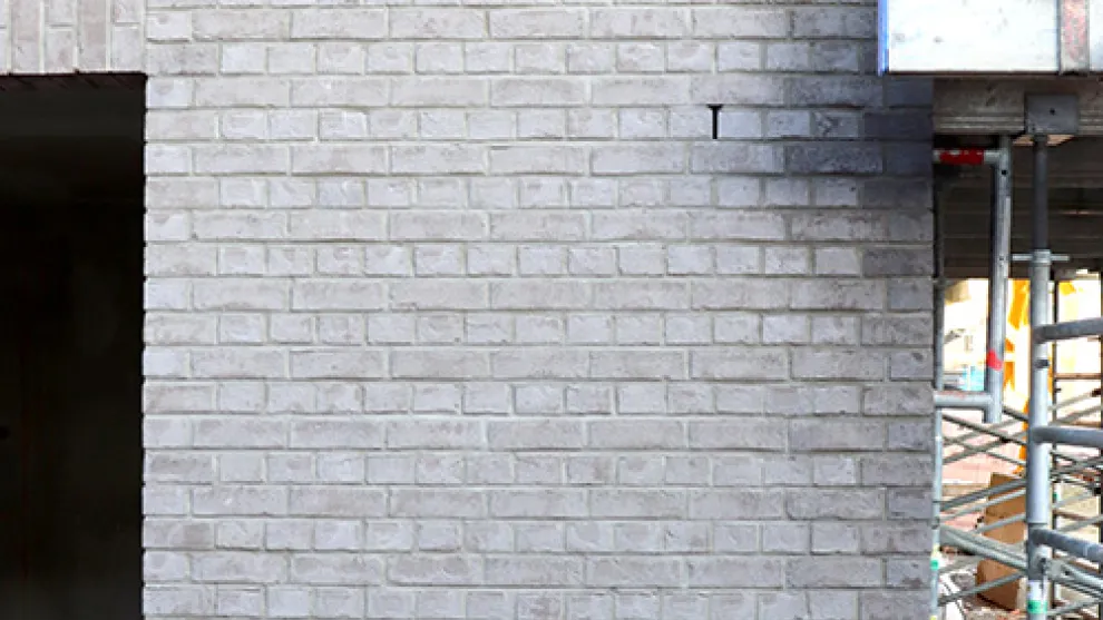 De aannemer Miroux uit Lens voert de ruwbouw uit en voor het metselwerk worden handgevormde gevelstenen Pagus Grijs van Wienerberger en Porotherm-stenen gebruikt.