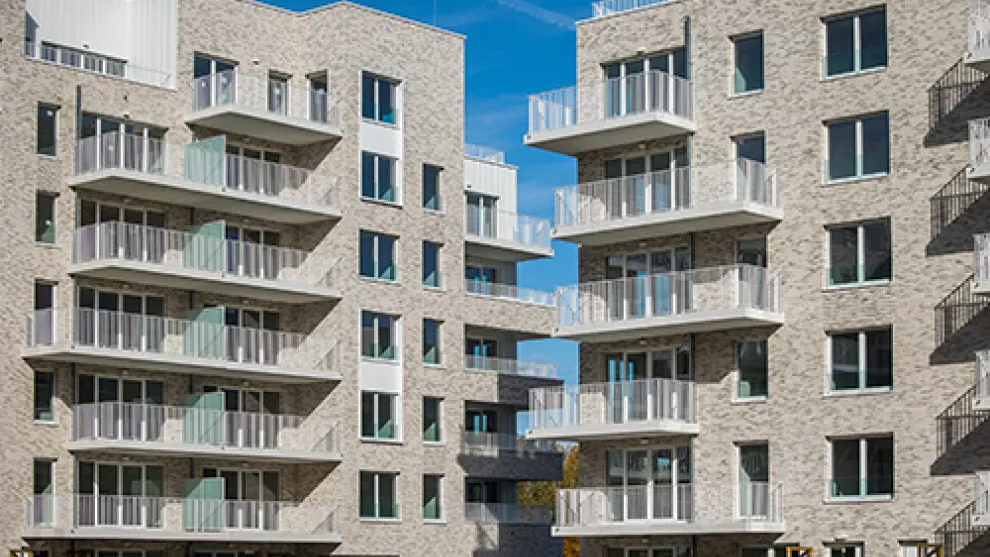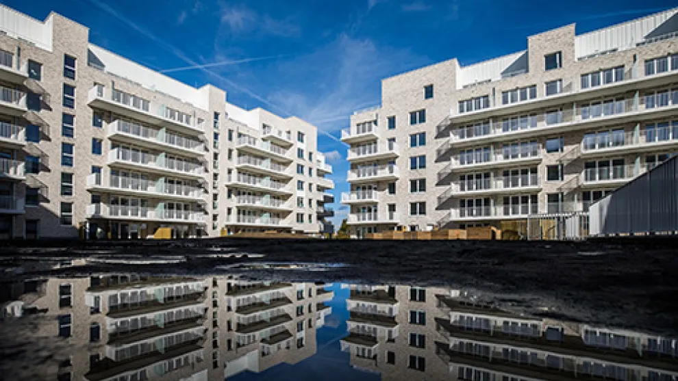 De daken van de appartementsgebouwen zijn voorzien van zonnepanelen en afval wordt in afvalcontainers verzameld en niet in vuilniszakken.