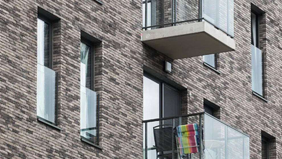 Les briques Rox Noors grijs, à base de pierre naturelle finement broyée, produits par MBI, sont collés avec notre mortier-colle coloré Murocol S (couleur 5002 - extra blanc) sur la face inférieure des bâtiments. Les joints fins réalisés avec Murocol S laisse ressortir d’avantage l’aspect rugueux, brisé et légèrement brillant des briques. Cantillana livre Murocol S dans des sacs, pour chaque immeuble, directement sur chantier.