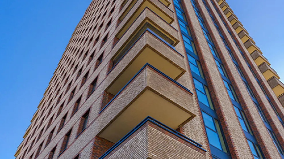 Voor de prefab betonnen balkons werd Voegmortel in een kleur op maat in big bags geleverd Het Tilburgse aannemersbedrijf Alphons Coolen Bouw B.V. voerde de ruwbouwwerken van Toren H uit en de teams realiseerden prachtig metselwerk dat het ontwerp van het gebouw, de gevelstenen en de mortel benadrukt.